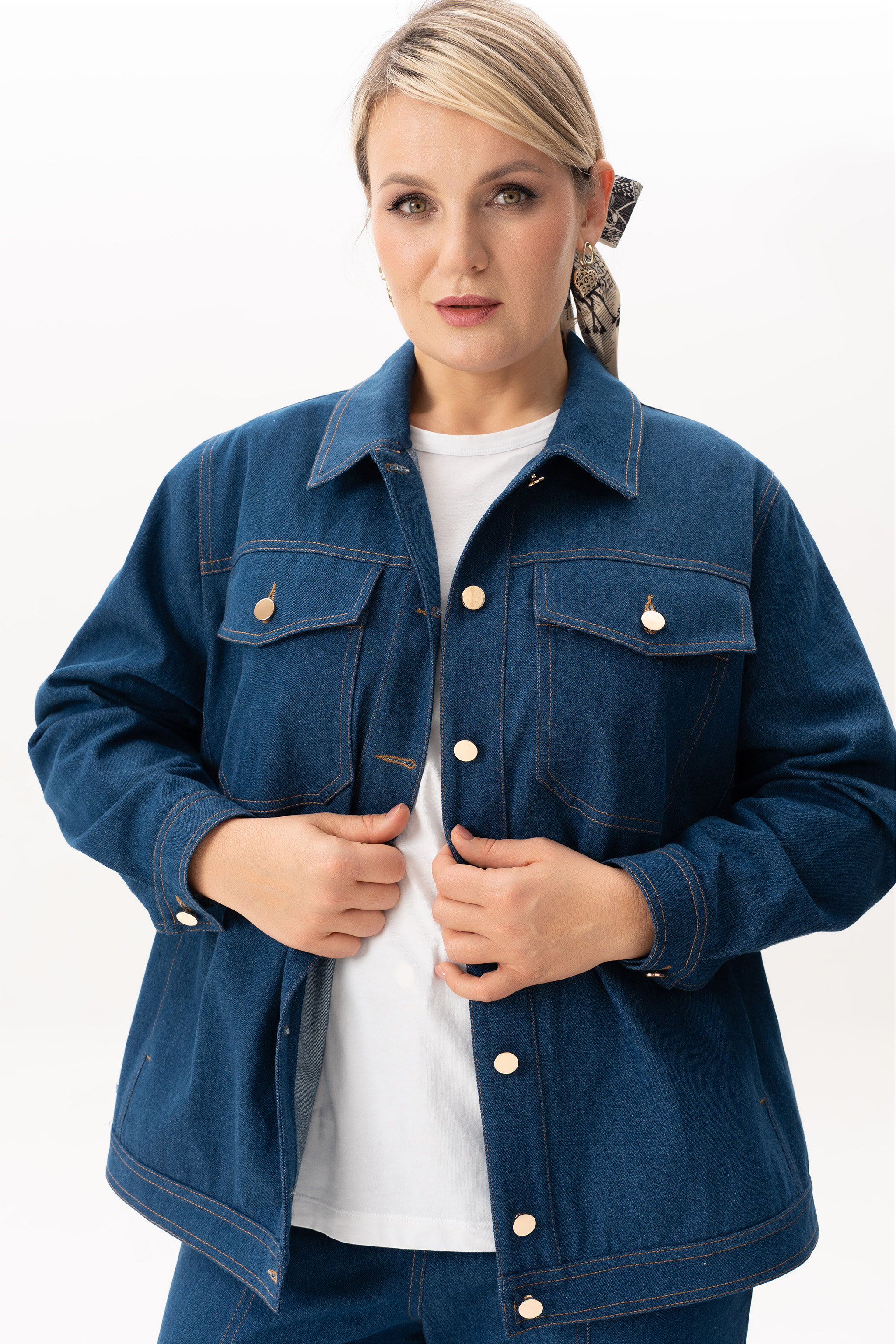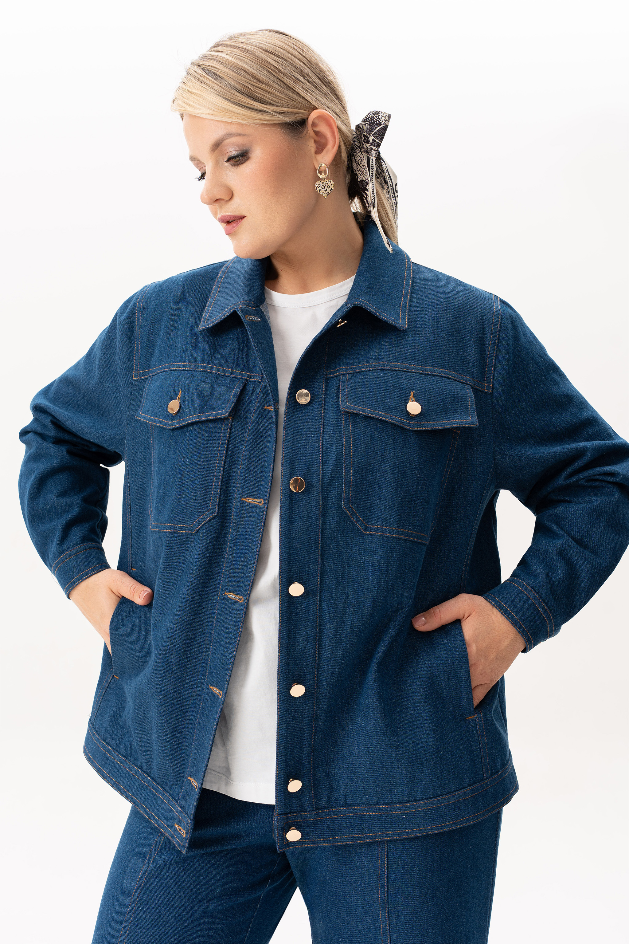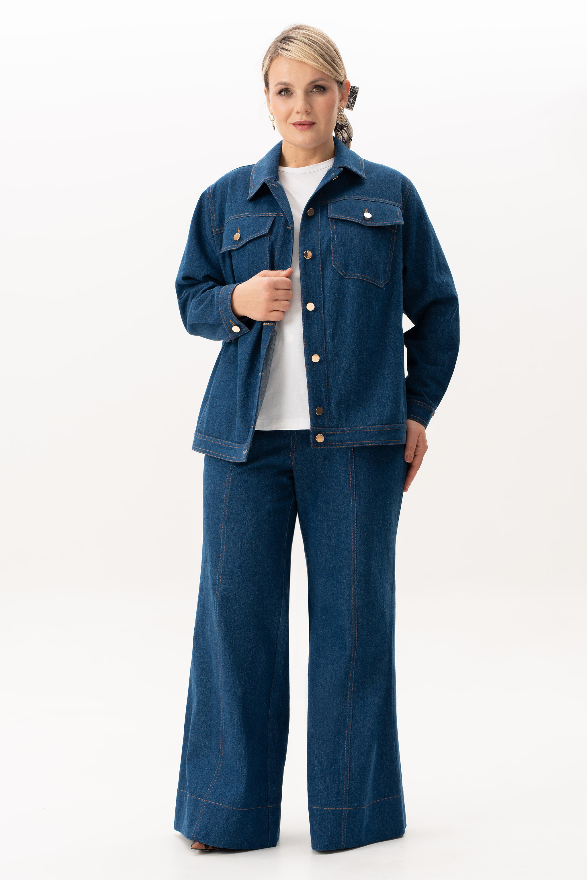 Предлагаем Вам супермодный джинсовый костюм в стиле 70-х — это стильный выбор для современной девушки или женщины. Джинсовый костюм двойка состоит из брюк-клеш и жакета-куртки средней длины на пуговицах, что делает его универсальным выбором. Два накладных нагрудных кармана с клапанами на пуговицах, два боковых кармана в рельефе и 2 внутренних кармана в жакете и пять в брюках добавляют ему функциональности, позволяя всегда иметь под рукой необходимые мелочи. Этот стильный весенний, летний, осенний брючный костюм создан из 100% хлопка, что делает его комфортным при любой температуре и очень приятным к телу. За счет плотной джинсовой ткани, костюм сохраняет свой первоначальный вид на долгое время. Модель с джинсами выполнена в духе классики, но при этом остается актуальной и трендовой на все времена. Возможность носить элементы раздельно — это важное преимущество. Джинсы клеш с высокой посадкой и широкими расклешёнными брючинами от колена. Низ брючин с широким отворотом и контрастной строчкой. Пояс со сшевками, застегивается на петлю и металлическую пуговицу. Вертикальные швы на брючинах визуально удлиняют силуэт. Мягкая эластичная резинка в поясе брюк обеспечивает комфортную посадку без стеснения движений, адаптируется к особенностям фигуры и не создаёт давления на талию, позволяя носить костюм целый день с лёгкостью. Джинсы с завышенной талией станут универсальным элементом гардероба как на каждый день, так и на праздничное мероприятие. Куртка-жакет легко комбинируется с другими элементами гардероба, сохраняя при этом классический образ. Если добавить парочку модных аксессуаров, то костюм легко трансформируется в наряд для вечеринки, дня рождения или другого значимого торжества. Не упустите возможность сделать заказ костюма прямо сейчас и приковывать к себе все взгляды окружающих уже сегодня!