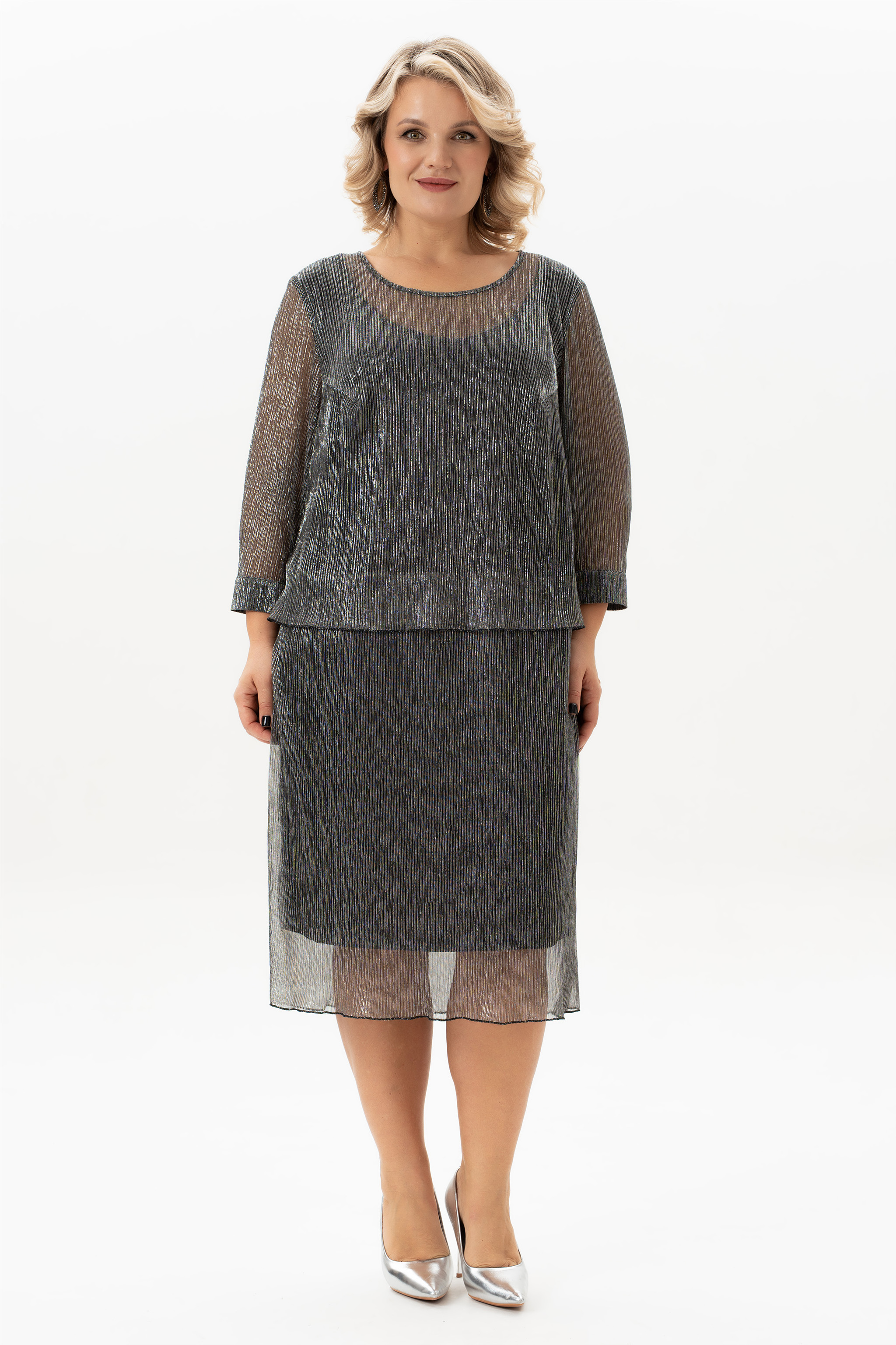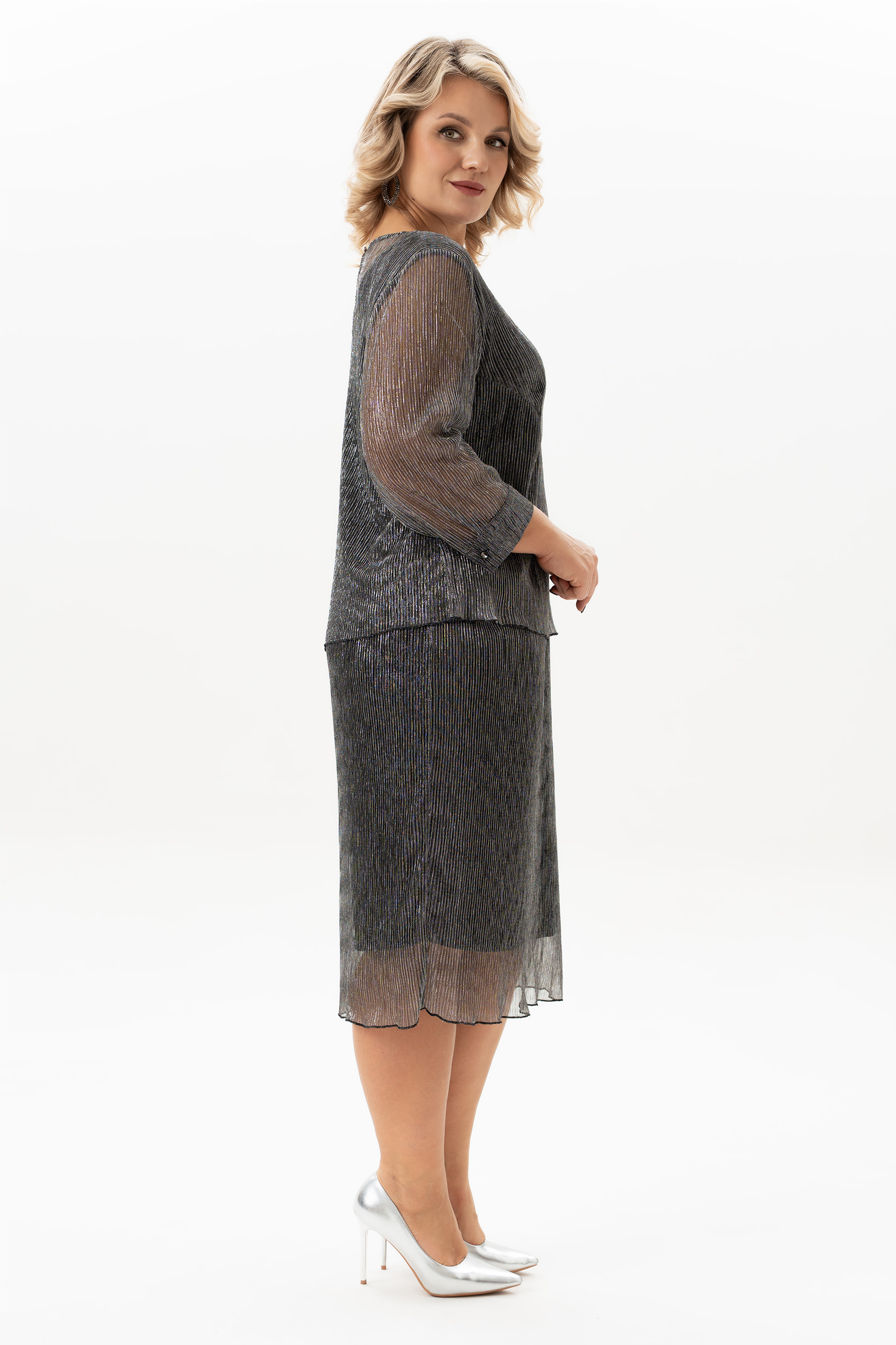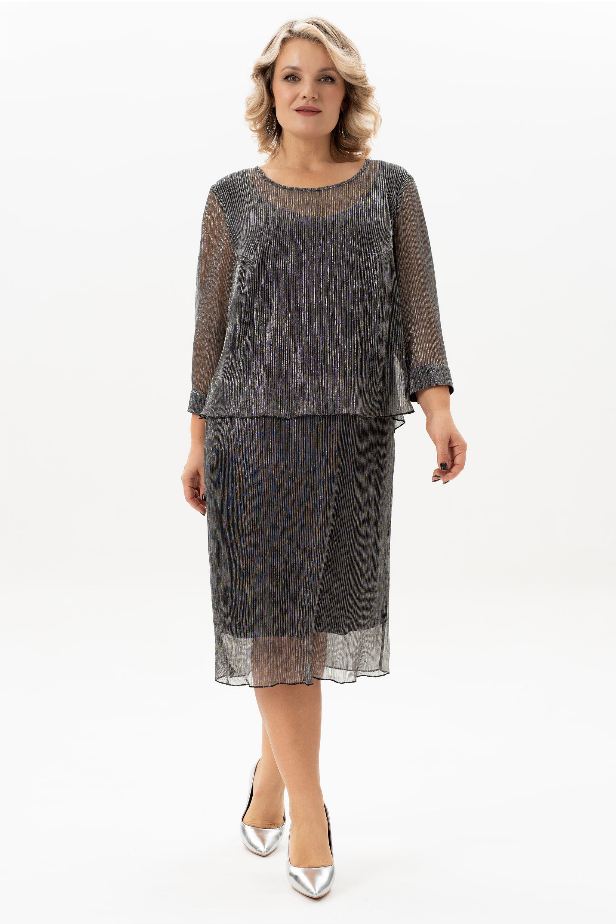 Элегантное плиссированное платье – стильный must-have для вашего праздничного гардероба! Полуприталенный силуэт и длина ниже колена делают это платье универсальным и практичным. Благодаря отлетным деталям переда и спинки, оно выглядит как изысканный костюм, сохраняя при этом легкость и комфорт. Мягкая плиссированная ткань и подкладка "масло" не сковывают движений, обеспечивая удобство в течение всего дня. Декоративная капелька на пуговицу по среднему шву спинки. Втачные рукава с элегантными манжетами на две декортивные пуговицы. Идеально подходит для торжественных мероприятий. Это платье будет великолепно смотреться в нарядном или молодежном стиле, дополняя Ваш образ в любое время года и любом мероприятии- день рождения, Новый год, свадьба и многие другие.
